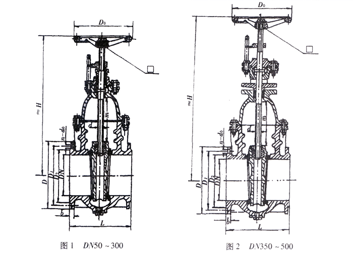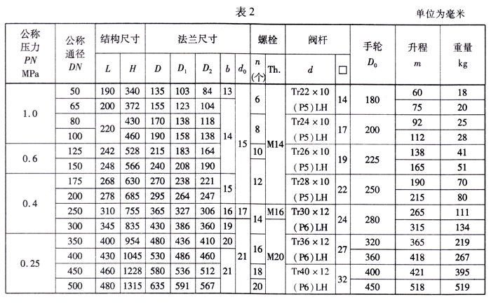 船用鑄鋼法蘭閘閥結(jié)構(gòu)圖與尺寸表